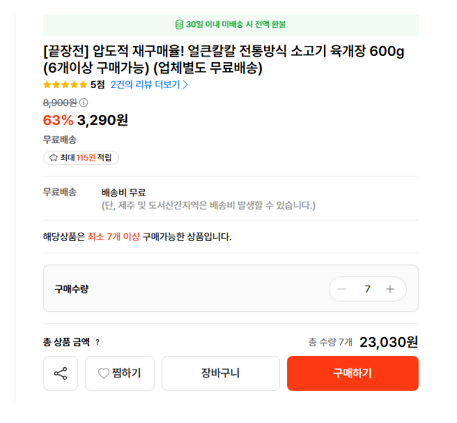 [끝장전] 압도적 재구매율! 얼큰칼칼 전통방식 소고기 육개장 600g (6개이상 구매가능) (업체별도 무료배송) 검색