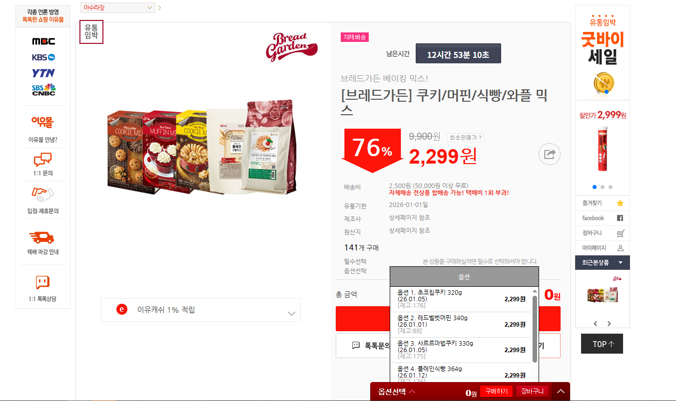 [브레드가든] 쿠키/머핀/식빵/와플 믹스 검색